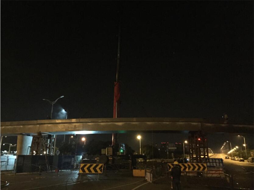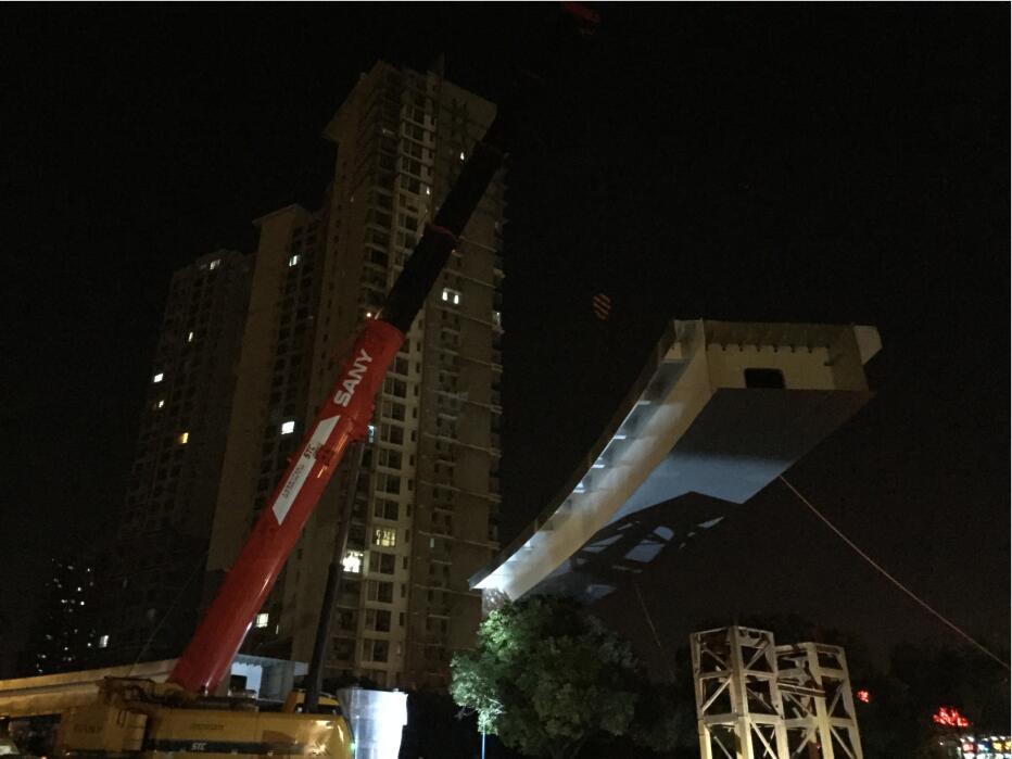 由我公司承建的柏廬路人行天橋工程,經(jīng)過幾個月的緊張施工,天橋主體于昨晚順利吊裝合攏。