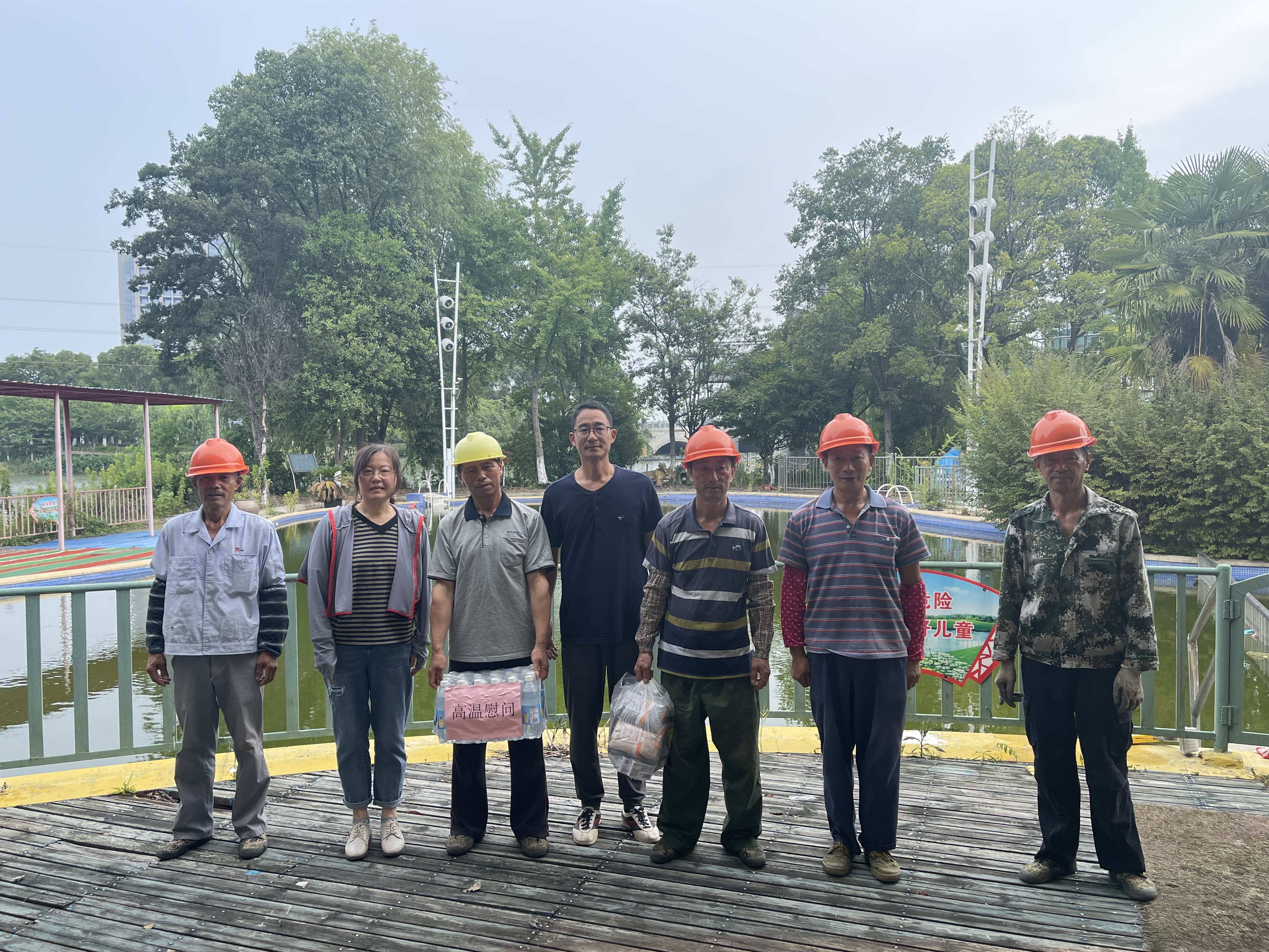 近日連續(xù)高溫預(yù)警,驕陽似火,烈日炎炎。為給奮戰(zhàn)在一線的工程施工人員帶去“清涼”,2022年7月15日,由公司領(lǐng)導(dǎo)將防暑用品及清涼飲料分別送往郭石塘綜合整治、時(shí)代大廈南側(cè)河湖水質(zhì)提升工程等施工現(xiàn)場,對(duì)堅(jiān)守崗位的員工進(jìn)行慰問的同時(shí),也囑咐要科學(xué)合理安排作息時(shí)間,保證一線工人身心健康,確保作業(yè)安全。